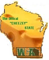 But I was thinking of cheese, too. Maybe the back side with all the info and tracking on it could be solid cheese-colored (and holey) like Cheezehead’s avatar, just shaped like a backwards Wisconsin, with the WGA logo, plus the date, plus the tracking #. It would look like that topsy-turvy New Jersey shaped one that BakRdz did in the middle of page 2 only a normal Wisconsin back side (cheese covered).