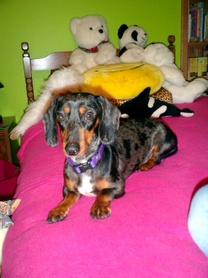 12/24/2005 at 5:30 pm #1738488Congrats on the newest member of your family! What a cutie!! My brother has a mini dachshund that is also dapple in color — dapples come with a very special personality!