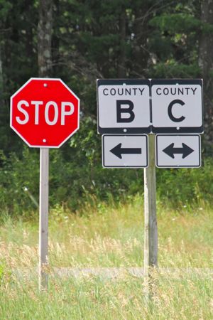 MemberCrossed this intersection today on a road segment of the Ice Age Trail in Waushara County, part of a total of 4.8 miles we hiked today. I’m trying to figure how how these signs need to be punctuated, but one thing is for certain: NOBODY can stop BC! Happy co-half-birthday, Becky!