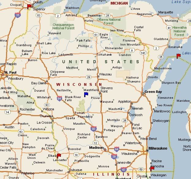 I’m thinking that maybe the exact geographic center is something like if you put the state on a pin there, the whole thing would be equally balanced. Since Wisconsin is odd-shaped (and full of oddballs), it won’t balance where the straight lines cross.