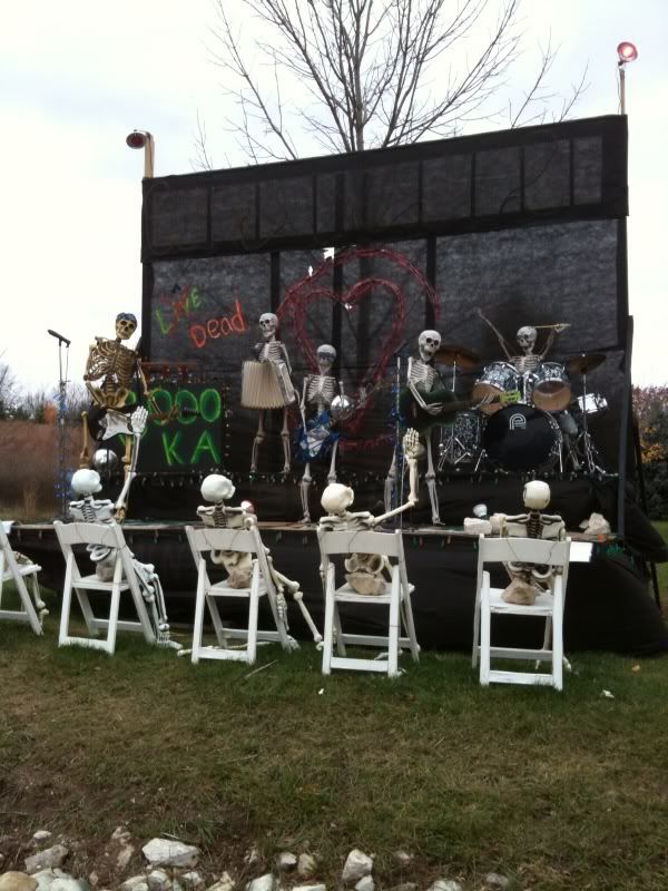 So while caching on Halloween yesterday, Jeremy and I came across this spooky vision while hunting a WSQ cache… It was just a few hundred feet down the road from the cemetery, on the side of the road in the middle of nowhere, complete with rockin’ music and lights. I just had to share it…